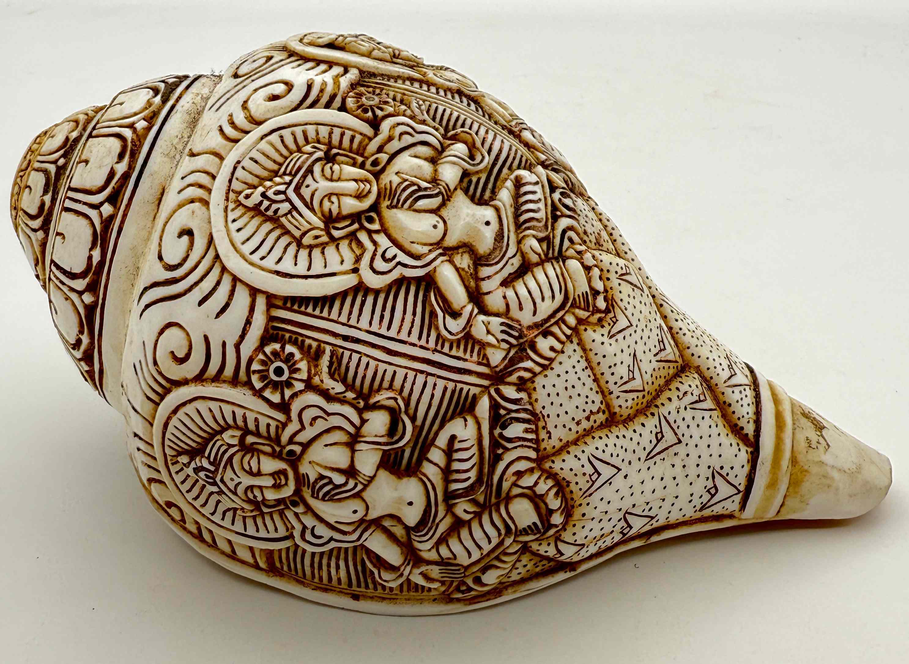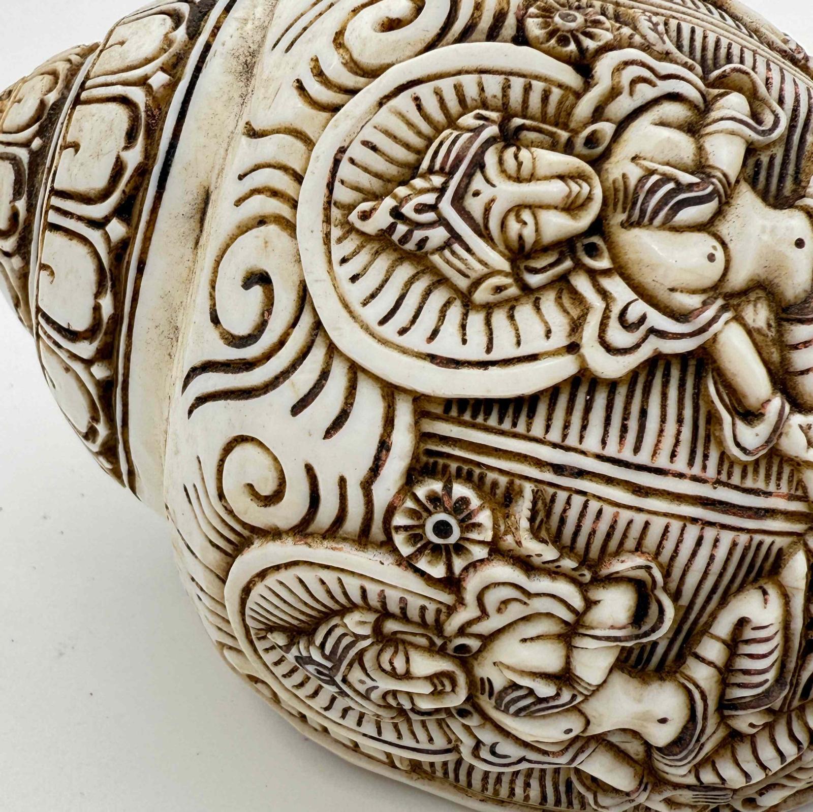 ★グリーンターラー(緑多羅菩薩)の見事な彫り細工があるシャンカです。